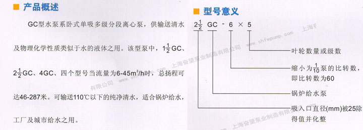 GC鍋爐給水泵G為多級分段式,1-1/2GC-4GC四個型號的進出口分別在進水段和出水段上,均垂直向上,其揚程可根據(jù)使用需要而增減水泵級數(shù)。