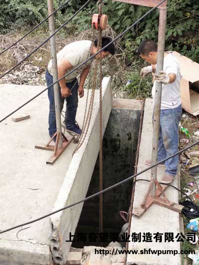 P S:本次安裝的泵體積都比較大,安裝的時候帶來了不小的麻煩,潛水排污泵為11kw